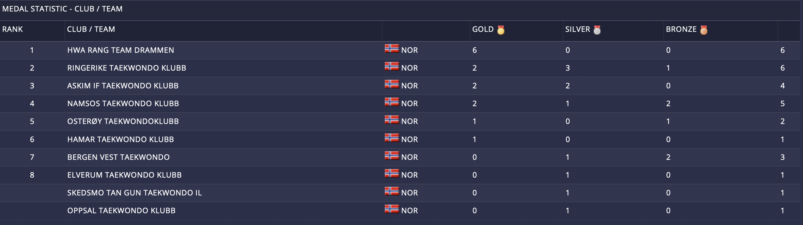 Til sammen fikk vi 2. plass for sammenlagte medaljer.