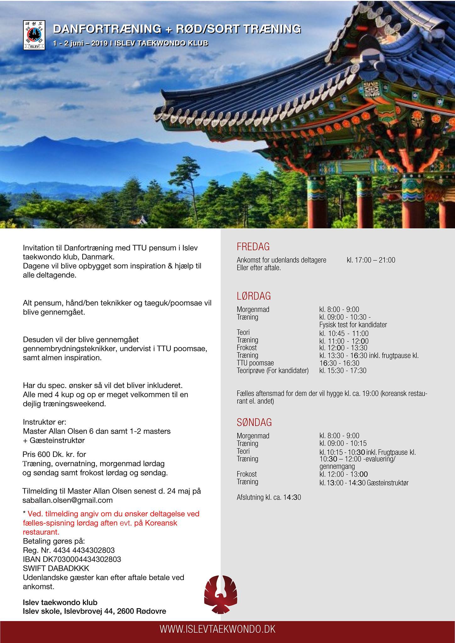 Velkommen til Danseminar 1.-2.juni 2019, arrangert av Islev taekwondoklubb i Danmark.