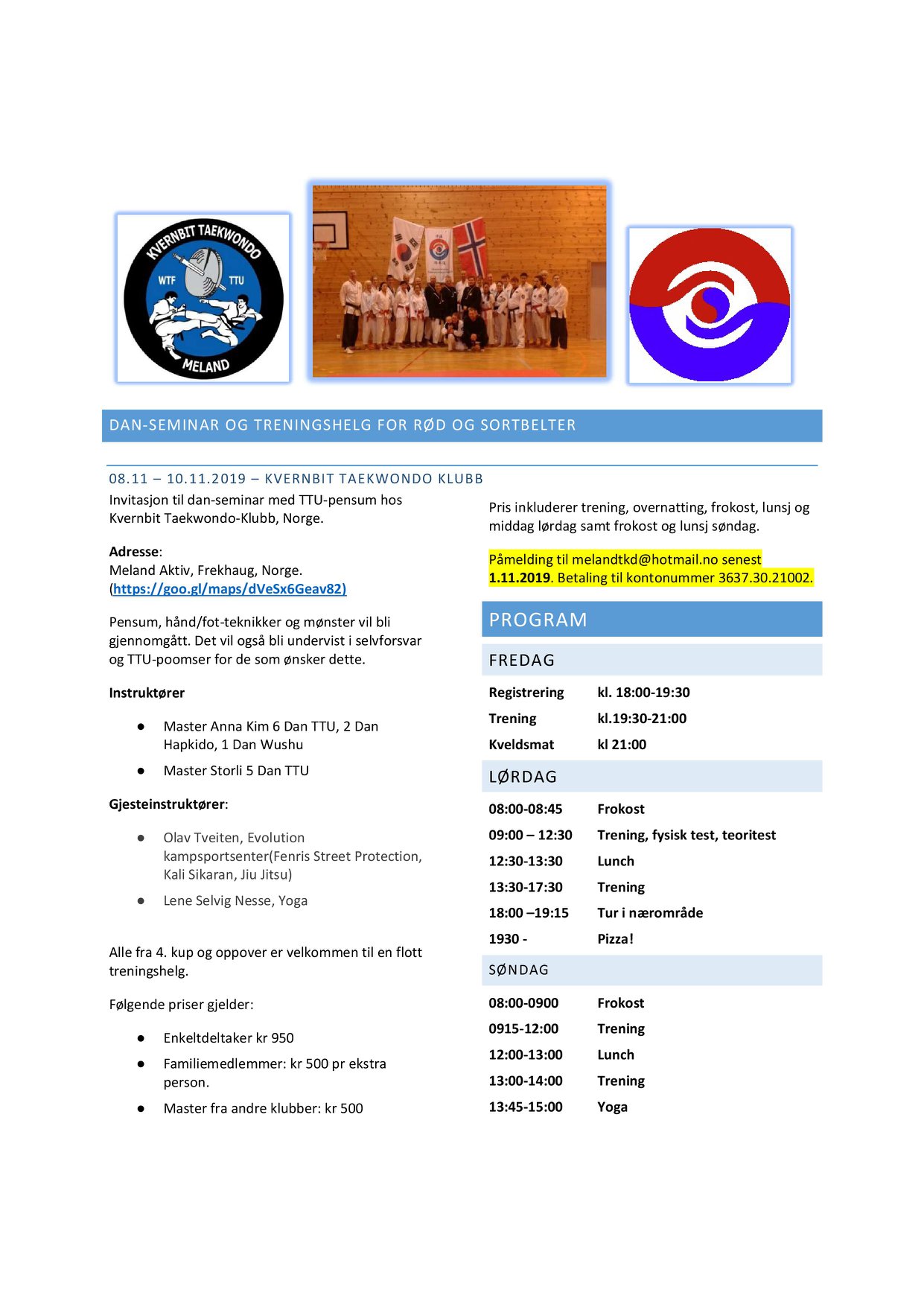 Kvernbit Taekwonod-klubb inviterer til dan-seminar med TTU-pensum 8.-10. november